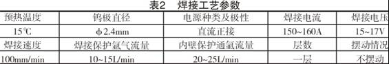 针对这种工艺及钛的焊接特点,制定了合理的工艺参数,具体见表2。