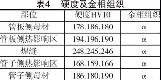3.4 硬度及金相组织 硬度及金相组织结果如表4及附图所示。